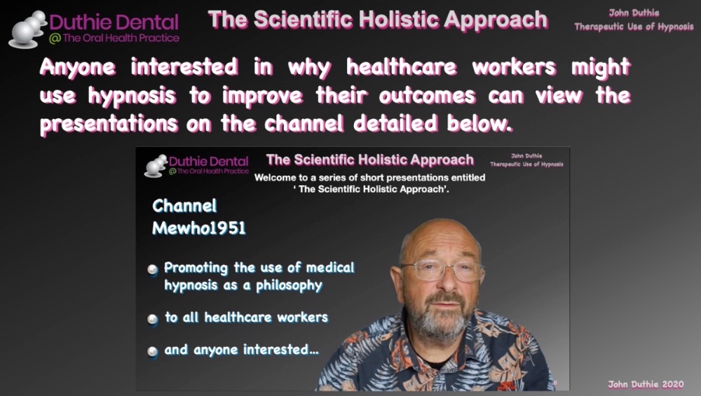The barriers to improved health are mainly incorrect information or understanding and then compliance with the new regime. Hypnosis is a useful tool in achieving the behavioural change required to comply with the healthcare instructions. There are very few patients who don't want to get better or 'be healthier, or have a greater feeling of 'well-being'. This 'Scientific Holistic Approach' takes all this into account and empowers you, 'The Patient'.